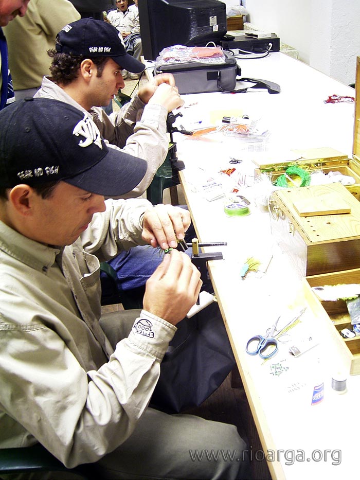 El sábado concurso de montaje de moscas de las cuales os mostramos varios de ellos y posteriormente una charla de José Manuel Hernández sobre los lucios, su vida, hábitos etc.
