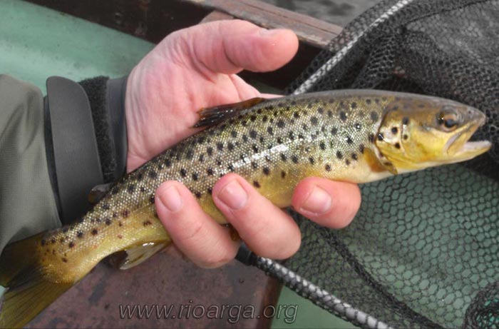 En un afluente habilitado como zona de entrenamiento, pescamos muchas truchas y de buen tamaño, varias de 40 cm, que en los escenarios echamos de menos. Trucha franca y algo fácil de engañar, los lugareños las suelen pescar a mosca ahogada y aguas abajo, aunque parece que van cambiando poco a poco sus técnicas y ya utilizan más la ninfa y seca.