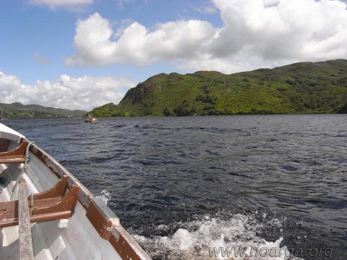 Otros dos sectores de pesca dividían el lago Leane, situado en un parque natural con las montañas mas altas de Irlanda y es un destino muy visitado por turistas. La población de peces y la forma de pescarlos, es similar que en el lago Caragh. El Leane es un lago muy grande, 8 Km de largo y hasta mas de 3 de ancho en algunas zonas. Cuenta con más de 30 islas e islotes que permiten derivas muy interesantes para la pesca. Desde nuestra posición flotante podemos ver iglesias y edificios históricos, cuenta con servicios de barcas y dos ferrys que están haciendo recorridos por esas zonas. También destacar la gran cantidad de barcas dedicadas a la pesca, se pueden contratar con o sin guía, os aconsejo contratar la primera vez un barquero para coger experiencia en la pesca, zonas más calientes y posteriormente hacerlo por vuestra cuenta. El precio sin barquero oscilaba 50-55 euros, lo ideal es ir dos pescadores por barca y los horarios eran de 9 a 5, pudiendo alargarlo algo. Llevar comida y lo mas importante buen chubasquero, llueve hasta cuando dicen que no va a llover.