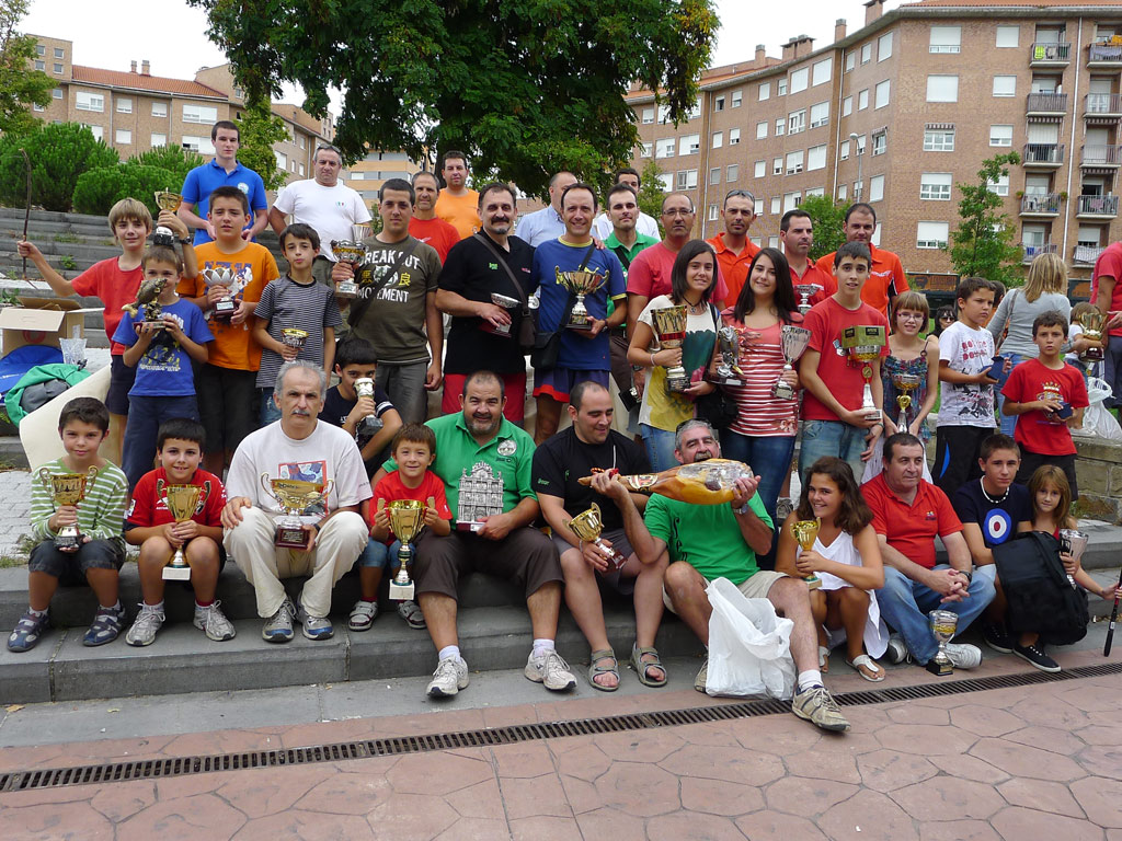 Al finalizar la comida se pasó a la entrega de premios y trofeos a los ganadores. Este año se ha dado un caso muy curioso y es que los ganadores en infantiles y mayores, han sido padre e hijo, ambos socios de P.D. RIO ARGA que también ha ganado por equipos.