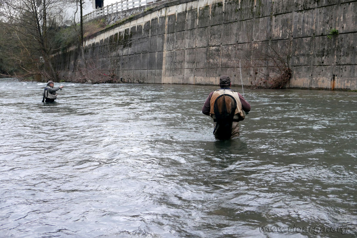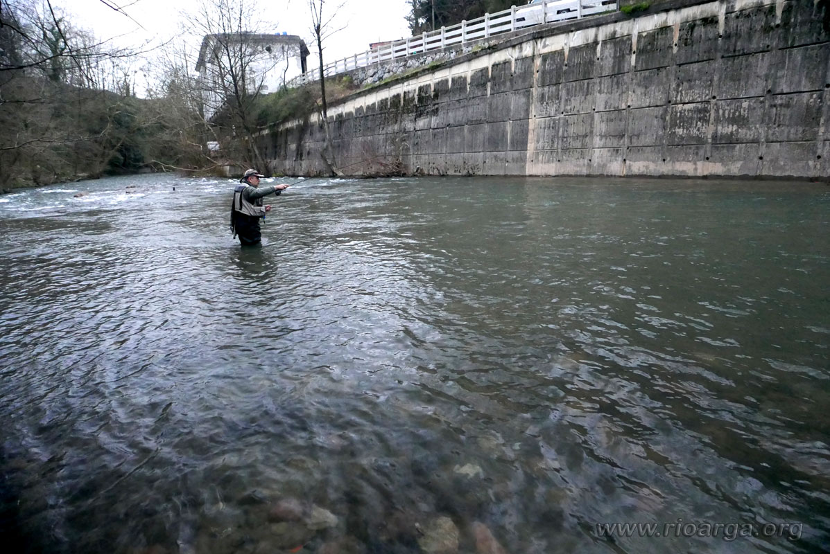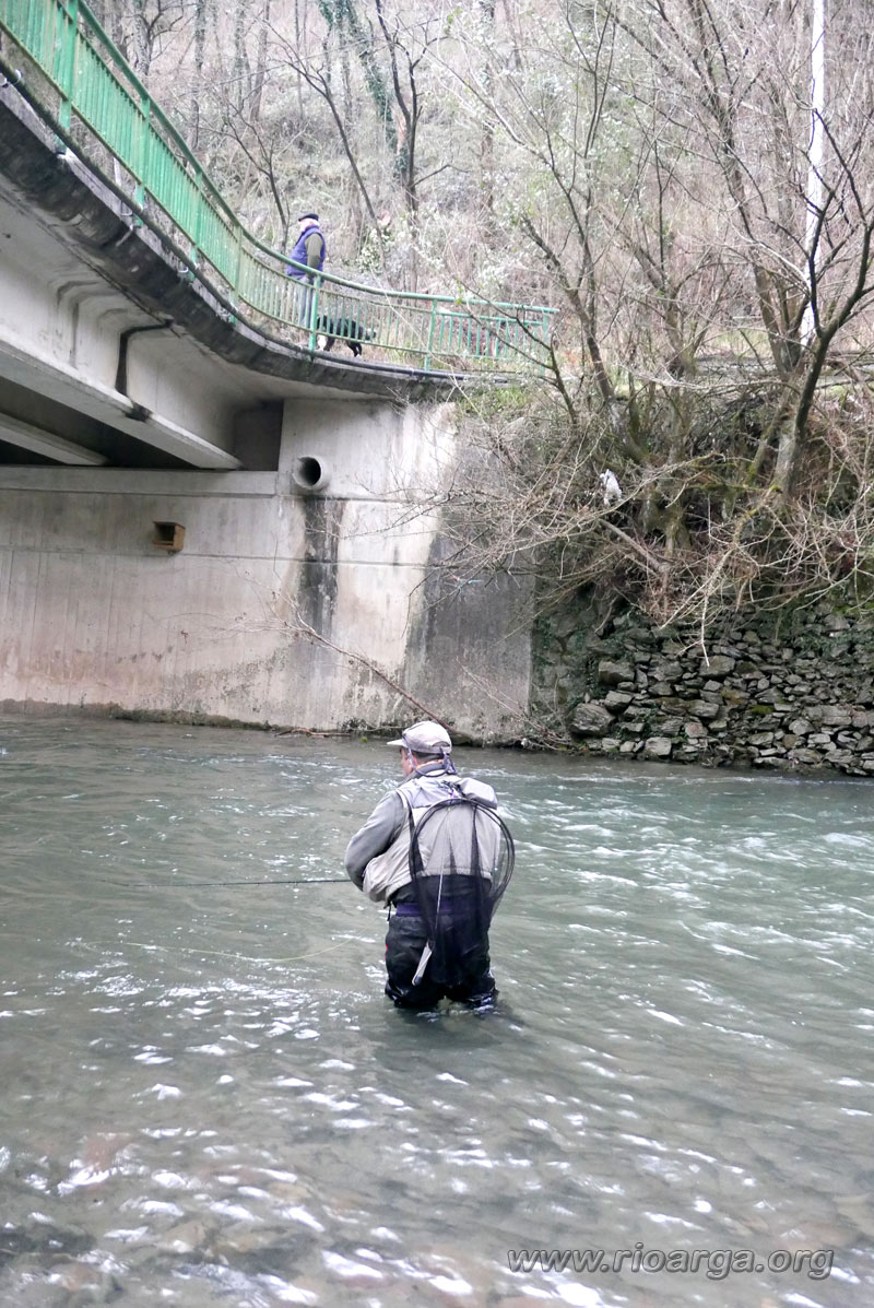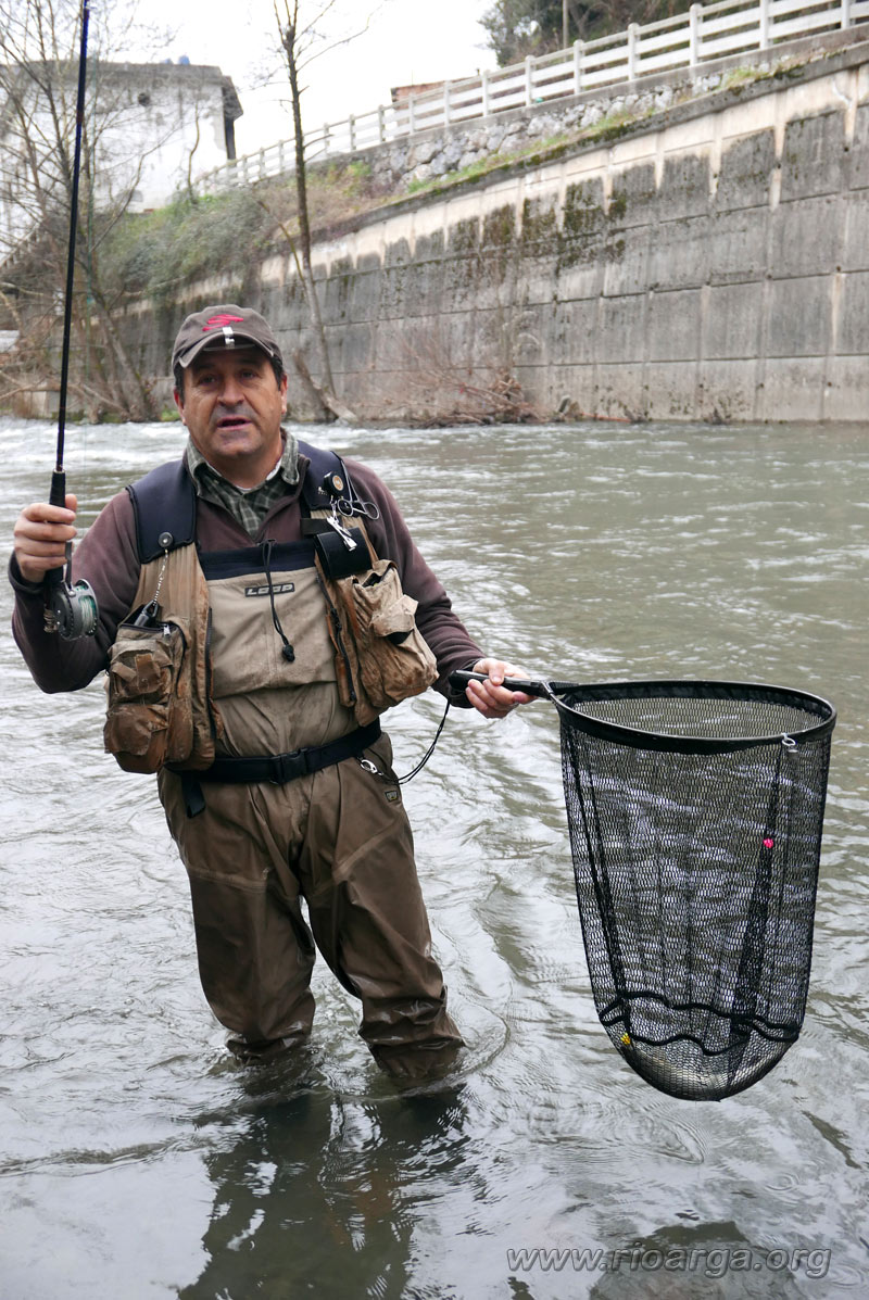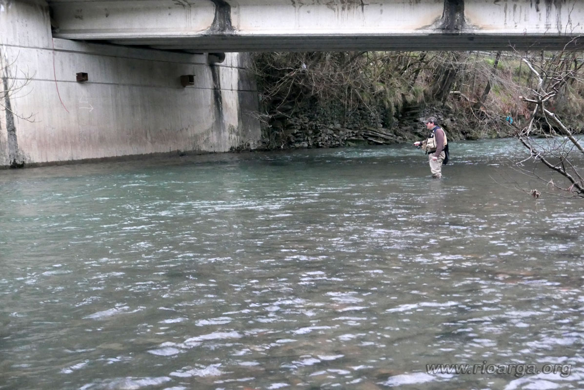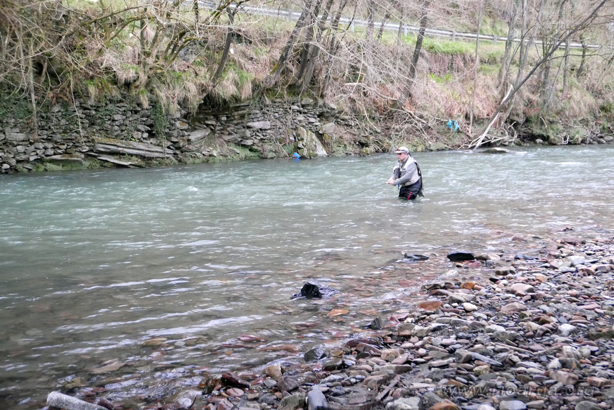 Río algo alto, agua fría y lluvia a ratos, sobre todo los que pescaron a segundas horas, las truchas estaban pegadas al fondo, eso hizo que en algunos tramos con mucha profundidad y corriente dieran las capturas habituales.