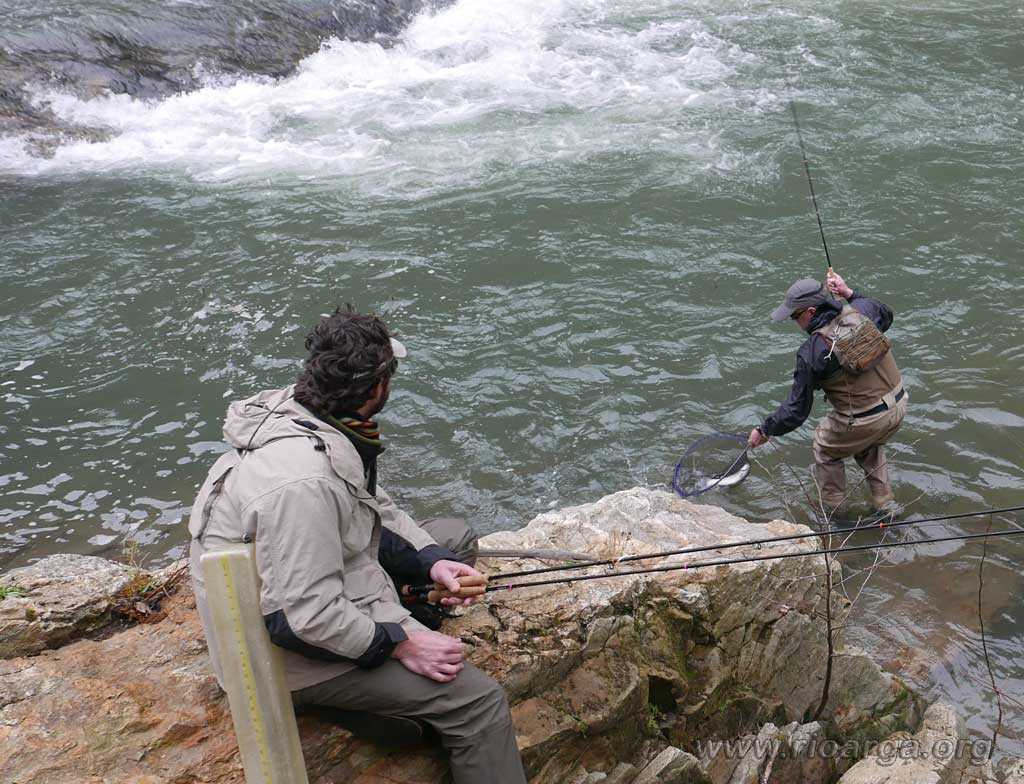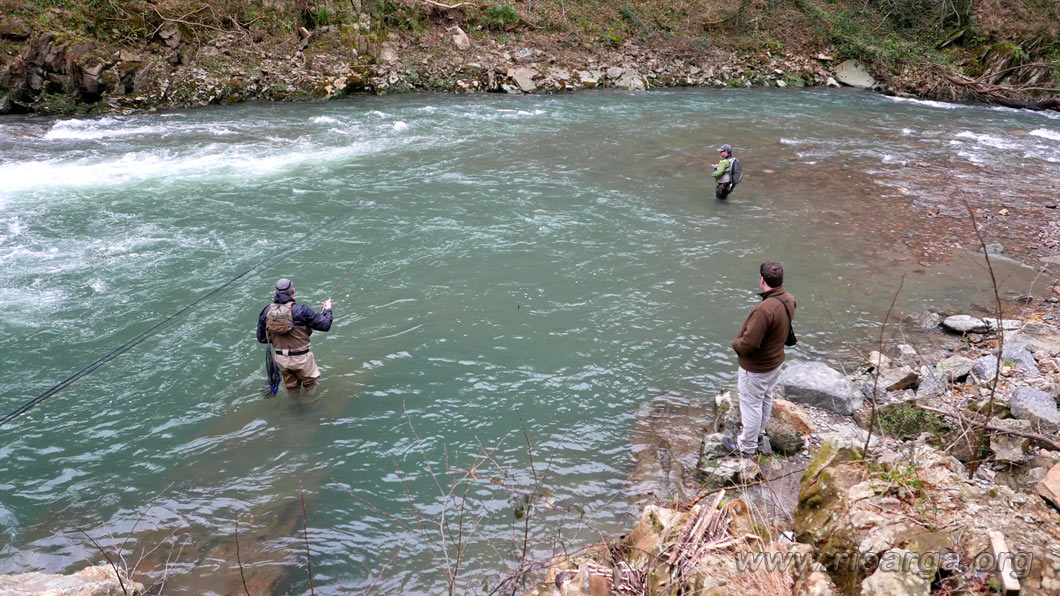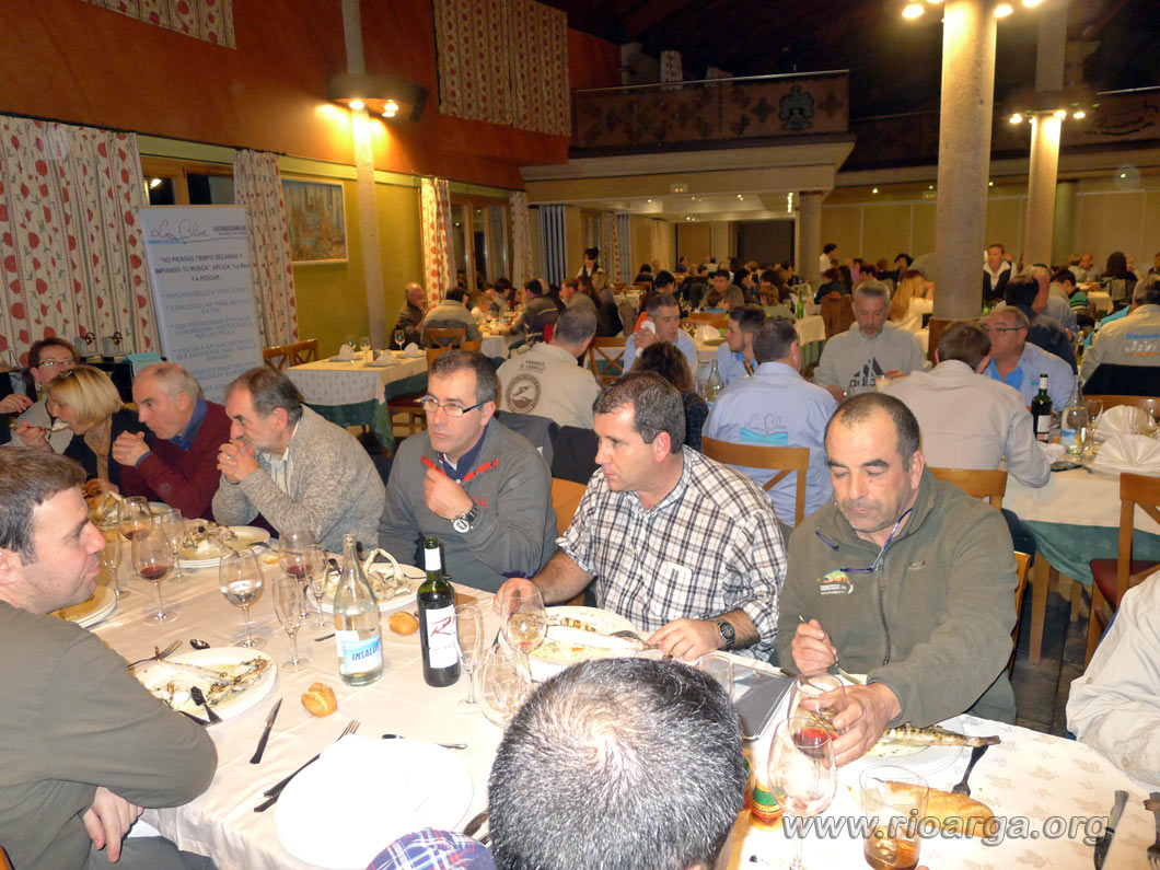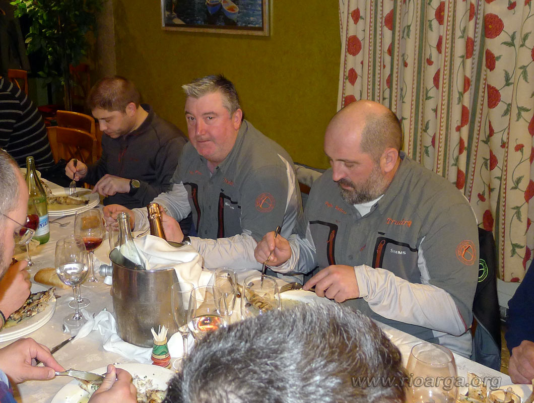 Como todos los años el ambiente excelente, el viernes el río bajaba alto pero pescable, algunos tramos algo mas difíciles pero la mayoría dieron bastantes capturas, el sábado después de toda la noche lloviendo, subió bastante, las dos primeras mangas dieron menos peces, la pesca se puso complicada, el río sin parar de crecer, en la comida se votó no pescar las mangas de la tarde.