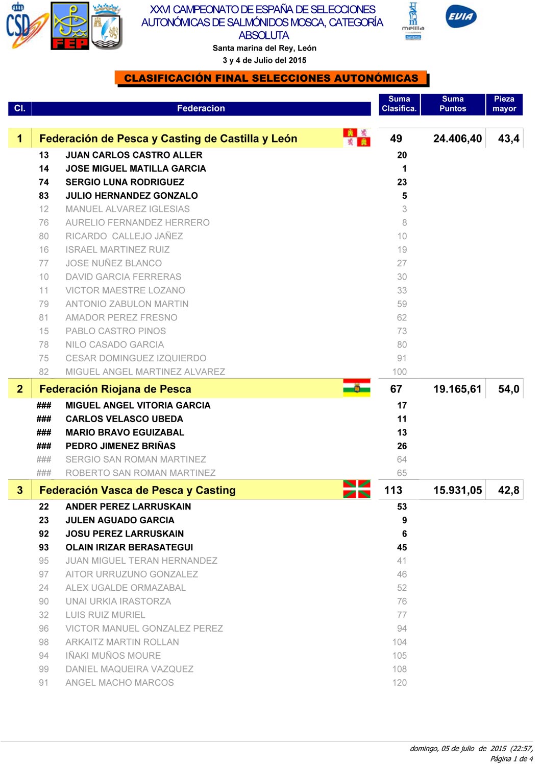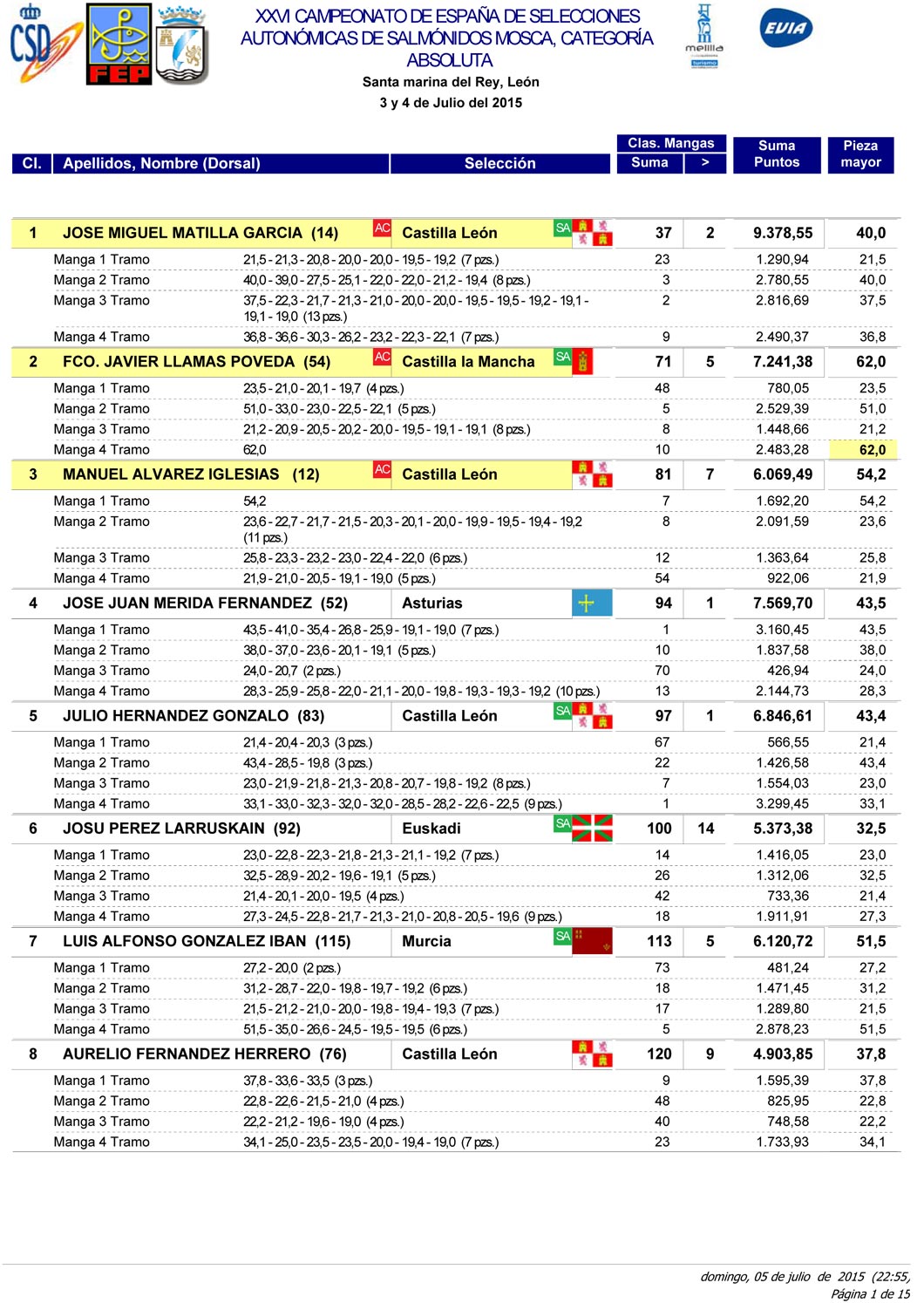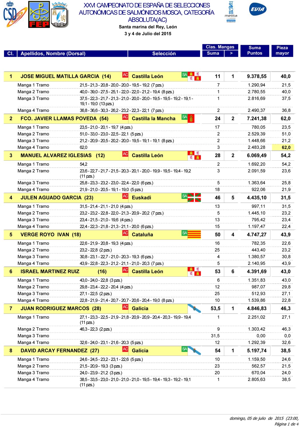 5 escenarios muy desiguales por el caudal que llevaban debido a la suelta de agua para riego, la actividad de las truchas, José Miguel Matilla consiguió la victoria en el campeonato de España, un primer puesto en Alta competición y formaba parte del equipo ganador de selecciones autonómicas.