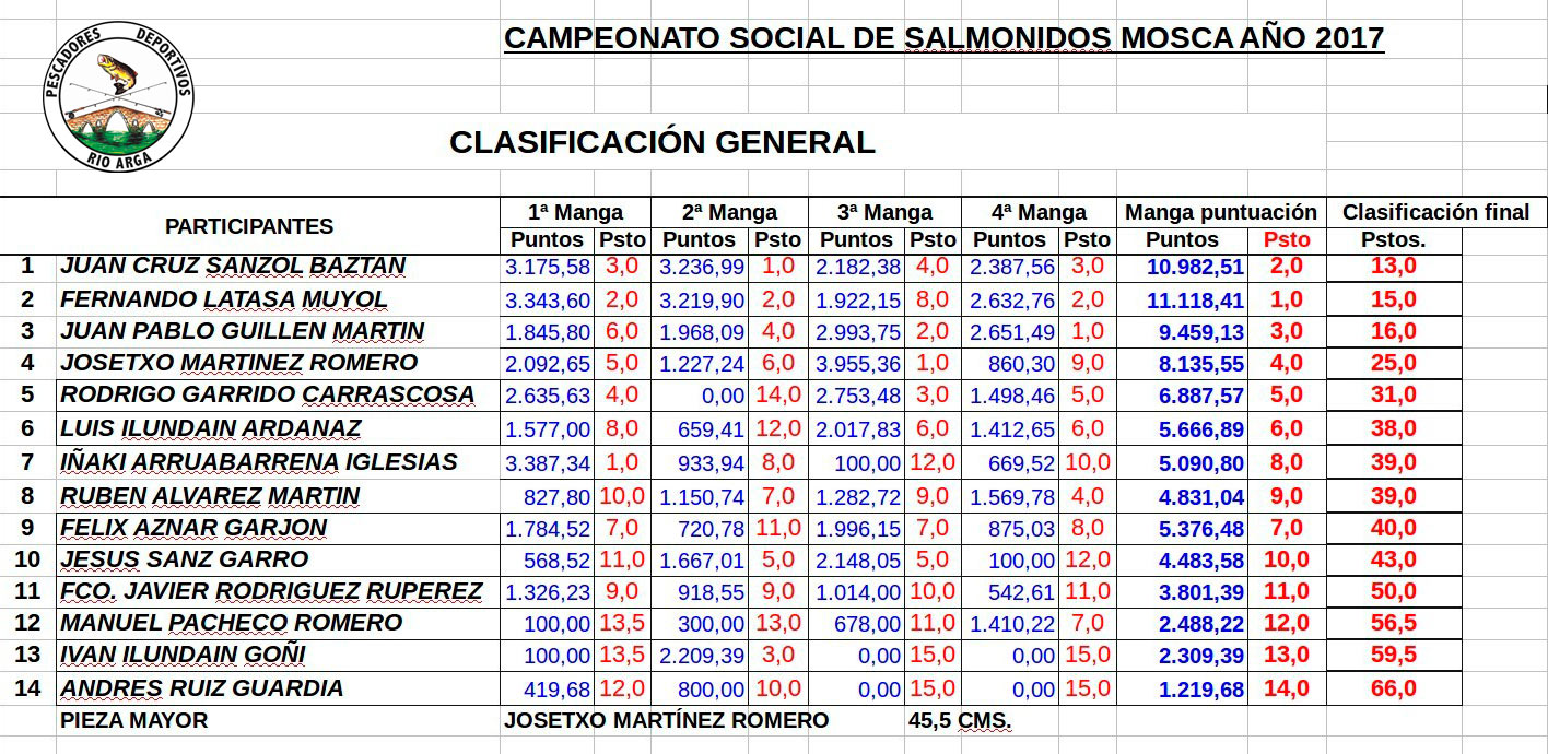 Los que pescaban a segunda hora lograrían sacar 20 ejemplares por debajo de los 19 cm y 26 por encima de esta medida, pescando la mayoría de los pescadores a la modalidad de tándem aunque también hubo capturas a seca y ninfas.