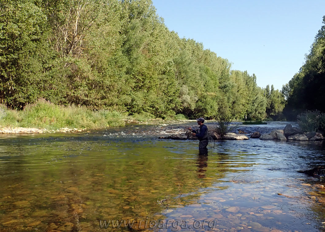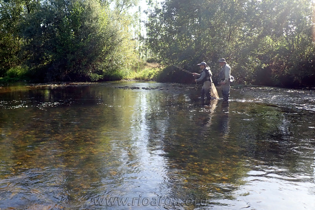 Caudal algo escaso que influyó en la actividad de las truchas dando resultados dispares en los tramos según la hora que se pescaban, los dos días cayeron tormentas por la tarde siendo la del domingo acompañada de granizo en la parte superior del coto.