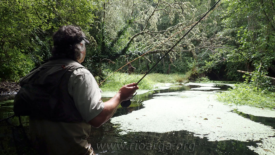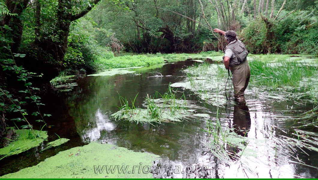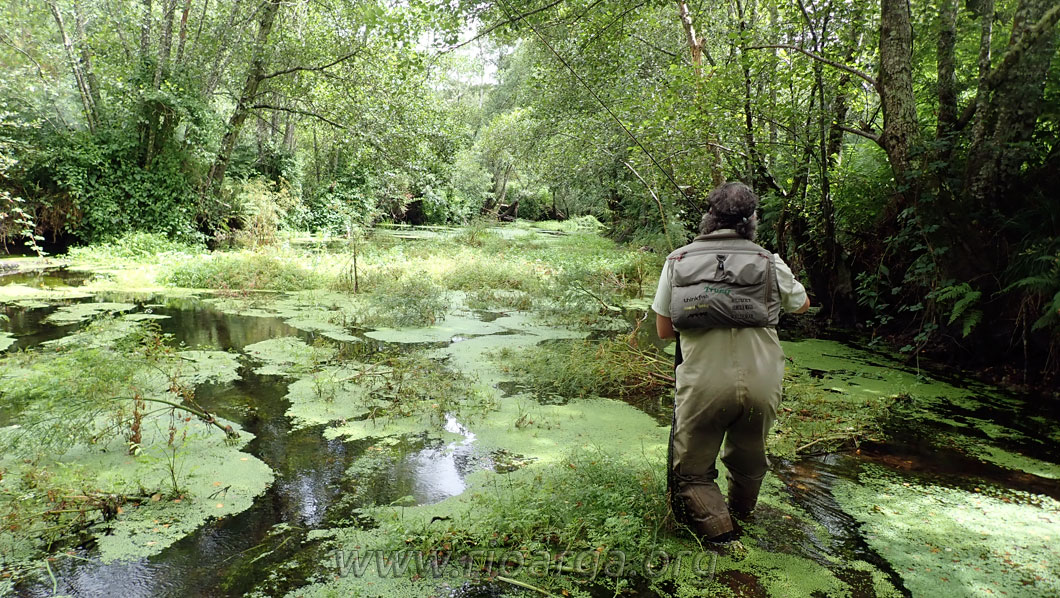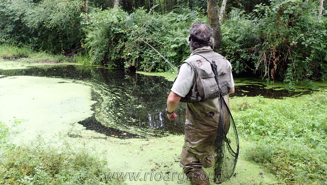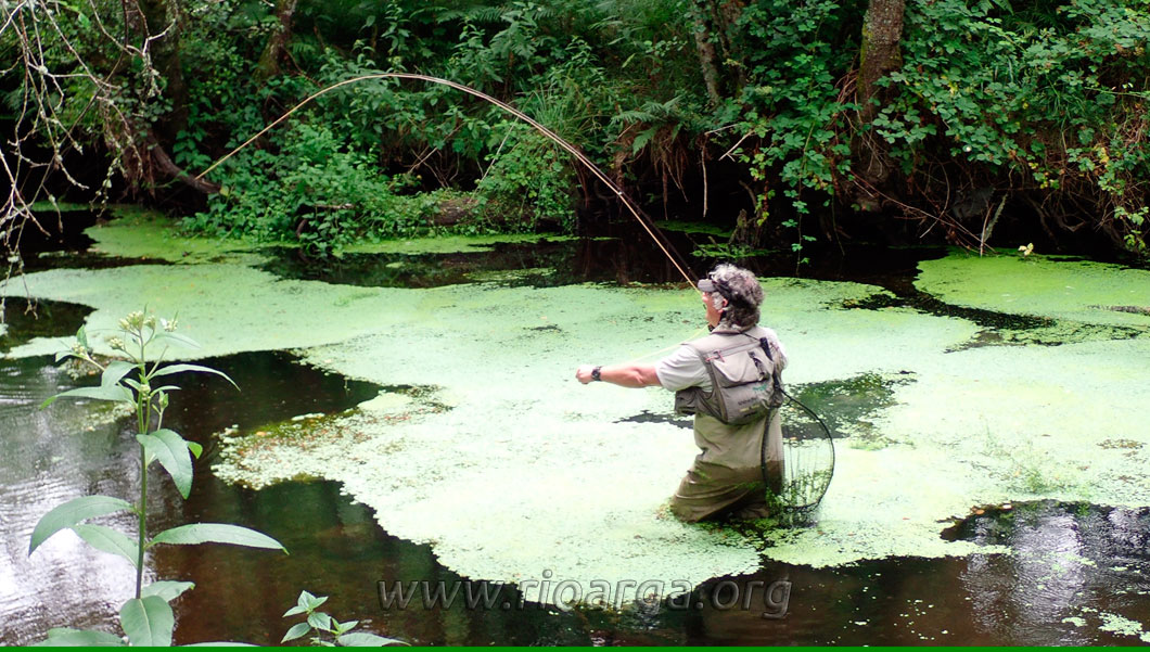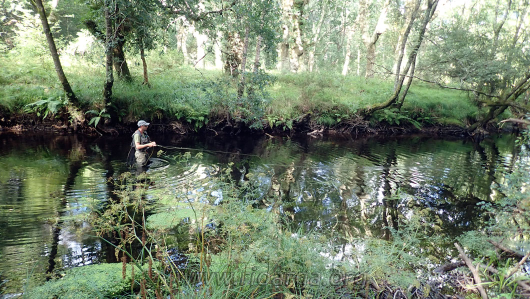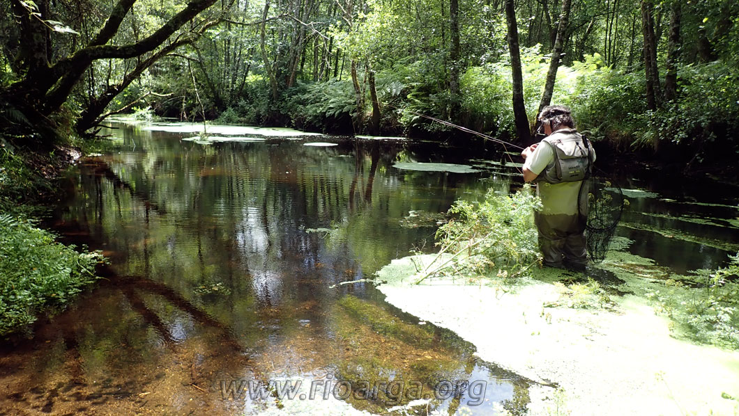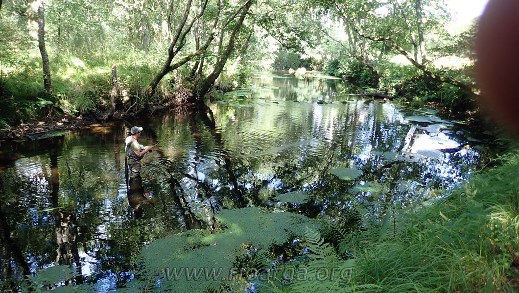 El sábado 22 de julio se celebró la catorce edición de este máster, 36 pescadores nos dimos cita en el Pazo de Ludeiro para el sorteo, al llevar poca agua el río sólo se permitió pescar amosca seca. A primera hora pesqué el tramo mas largo de Monterroso, mucho perejil pero salían truchas en los agujeros hasta que empezó a llover, se acabó lo que se daba, controlé a Julio Seijas un tramo por debajo del mio y de similares características, hacía rato que había dejado de llover y hubo actividad de las truchas llevando Julio a la sacadera siete de ellas y varias que se le soltaron, en el vídeo se ven algunas capturas. Por la tarde fuimos al coto de Antas, controlé a Sandamil en un tramo precioso pero sin actividad en las dos horas, alguna subida esporádica pero sin ganas, en mi manga lo mismo, pero al final del tramo unas pequeñas corrientes y ahí había alguna con ganas.