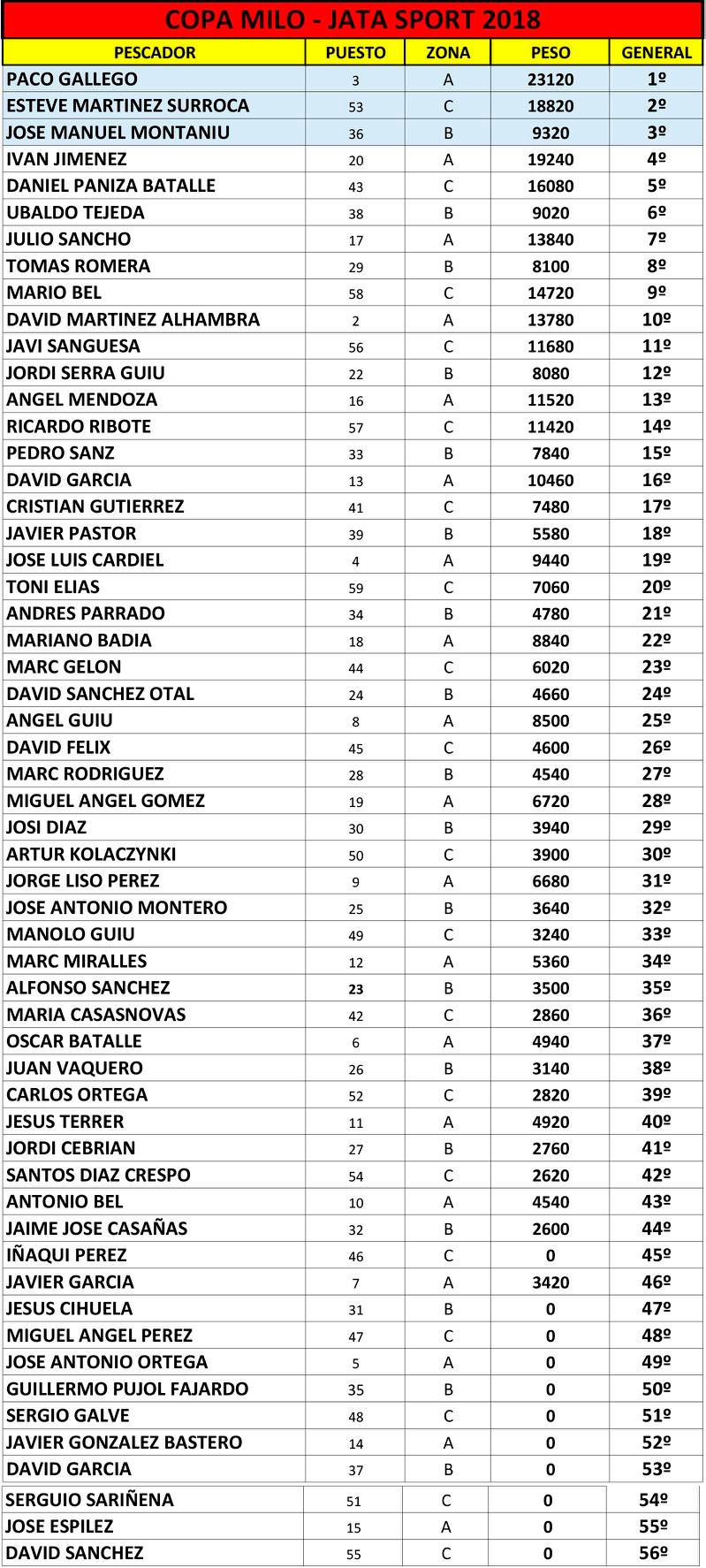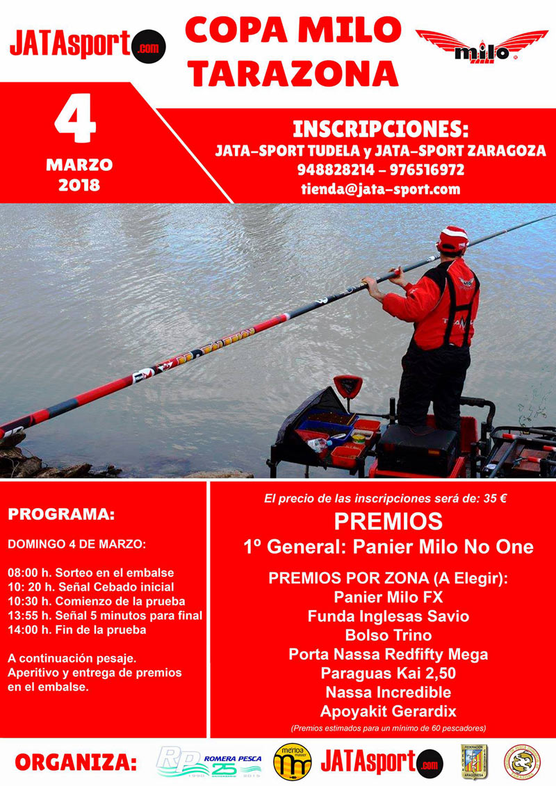 El pasado 4 de marzo se celebró la Copa Milo - Jata Sport en el embalse de Santa Ana en Tarazona en el que participaron 56 pescadores, el frío y el viento estuvieron presentes a primera hora mejorando algo posteriormente.