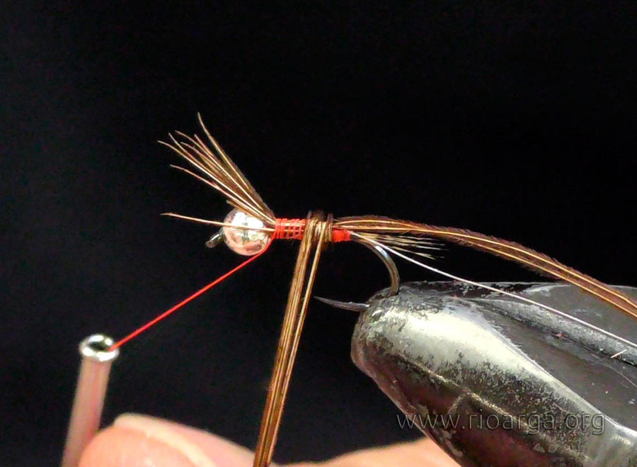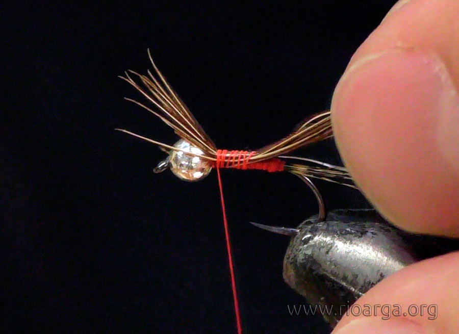 Montaje de una ninfa de faisán "la culirroja"