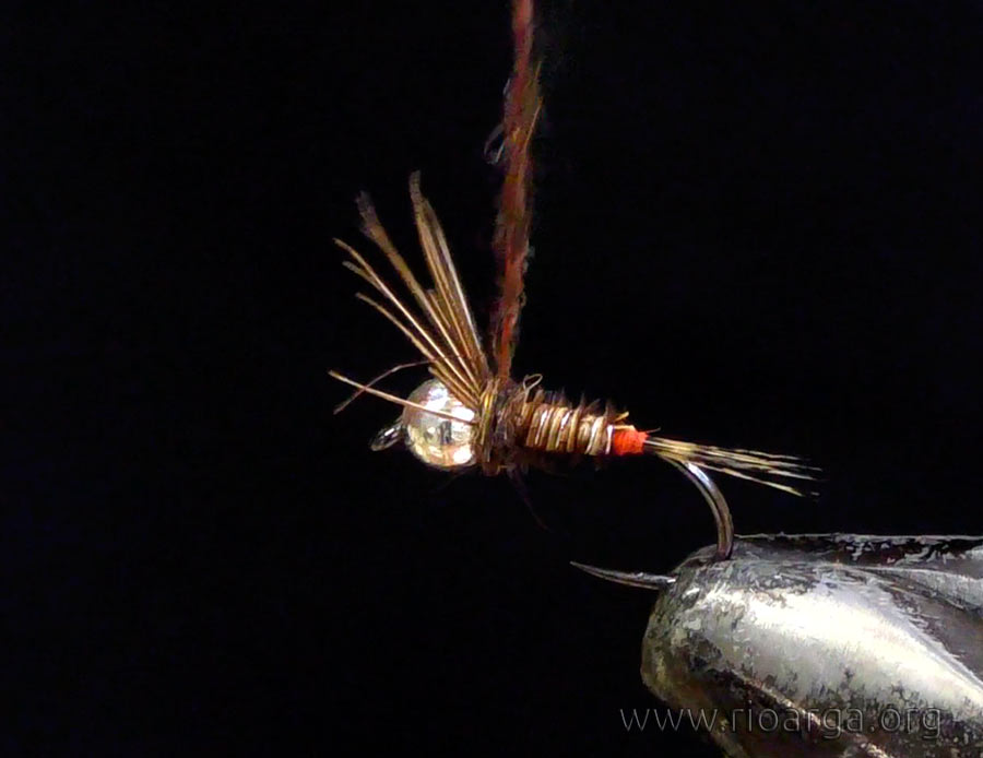 Country nos presenta una ninfa de conjunto que pesca muy bien en todo tipo de ríos, la define como una de las mejores atractoras que monta, os dejamos el vídeo de montaje y las fotografías del paso a paso.