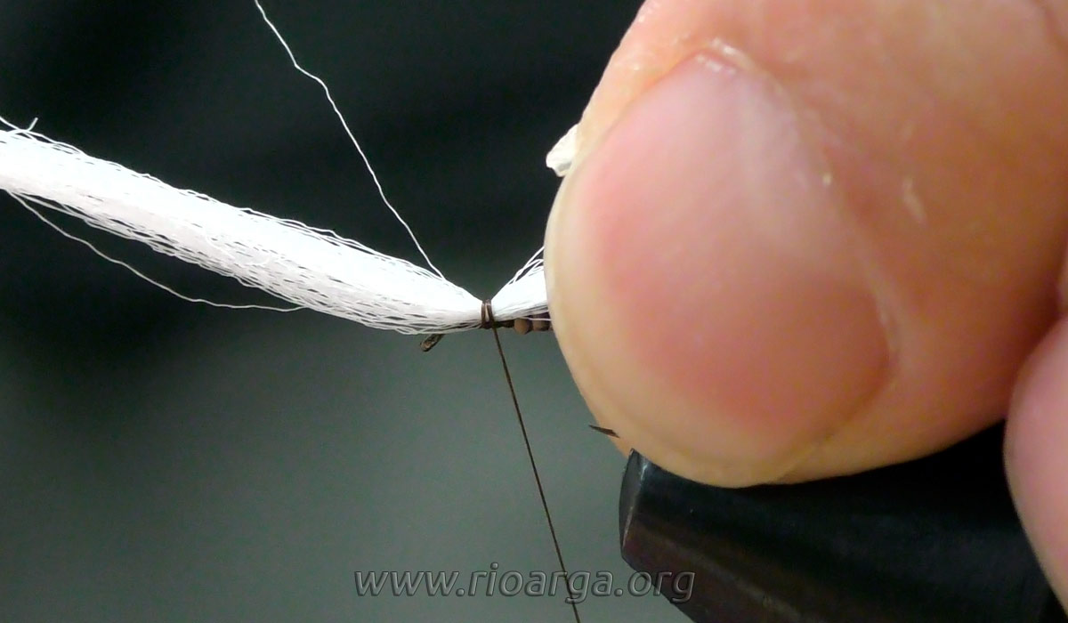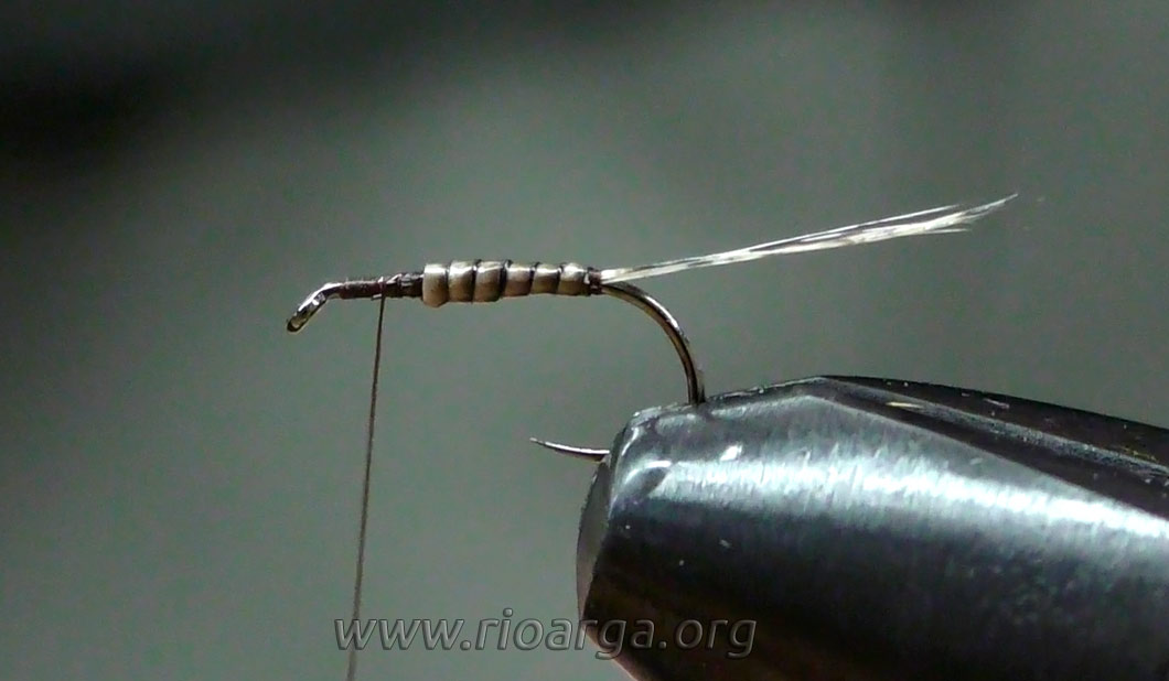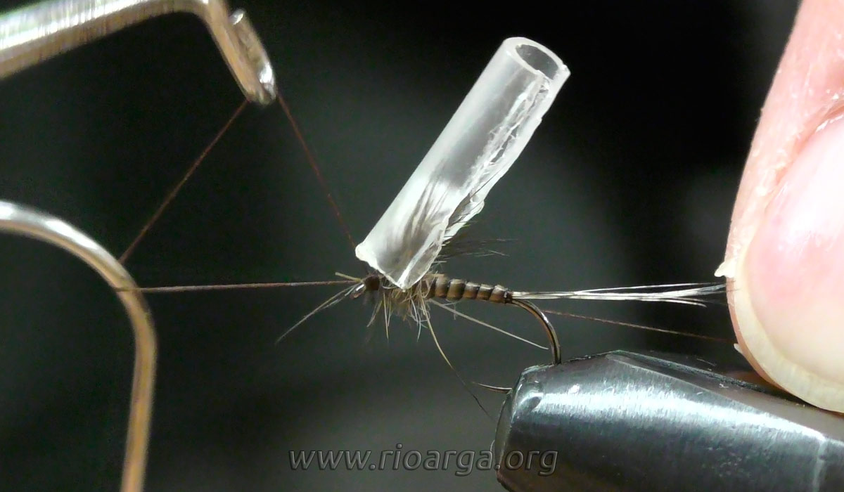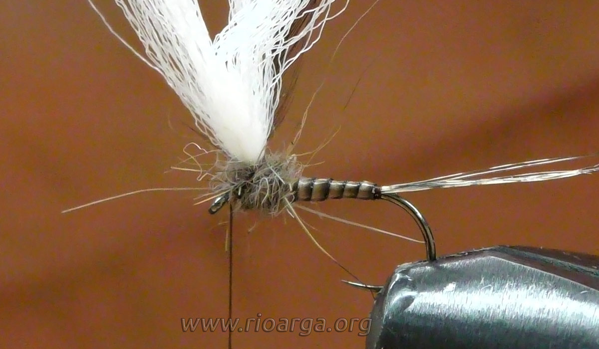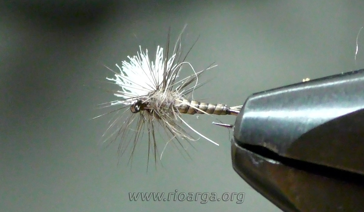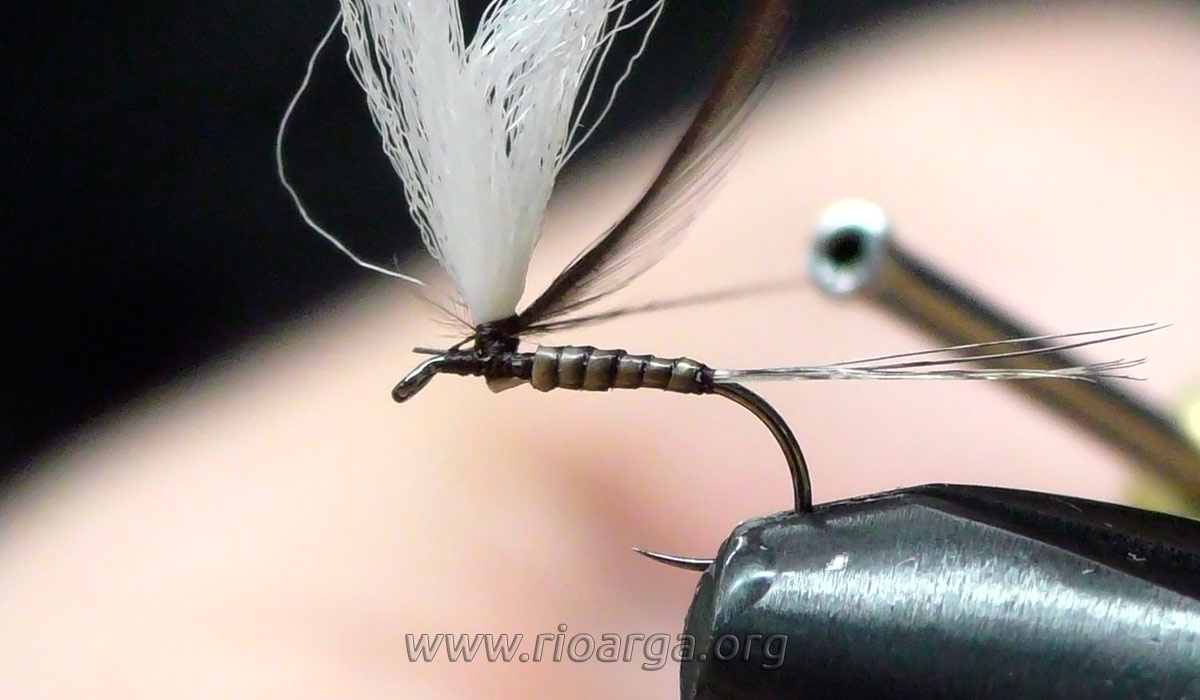Este es un montaje que por su realismo nos dará muy buenos resultados pescando en tandem acompañado de una ninfa de pelo en 2,5 o bien sólo pescando en zonas de corrientes.