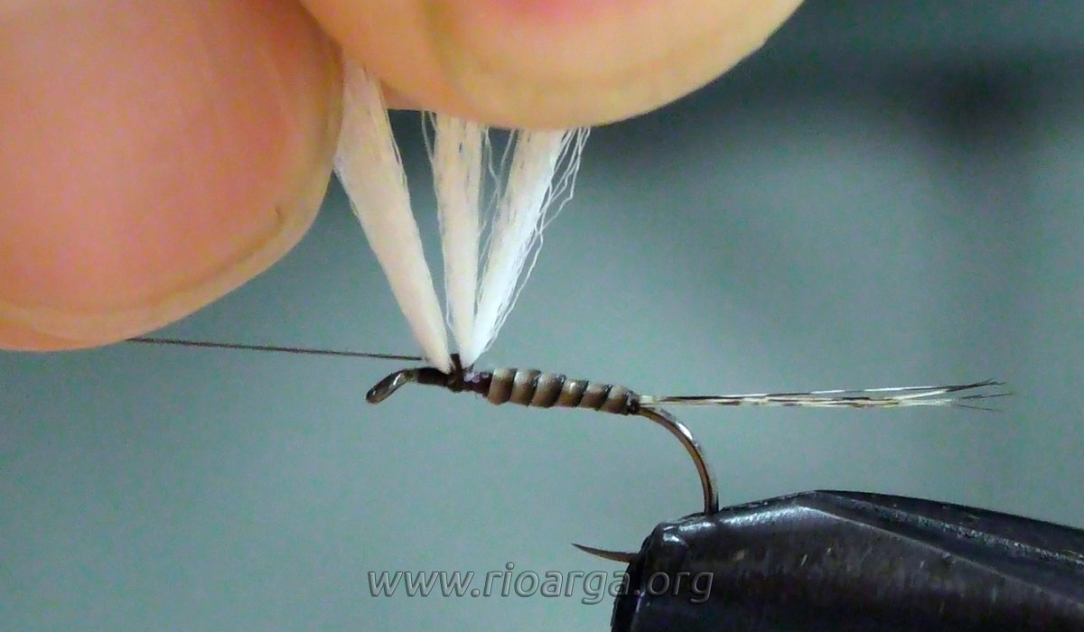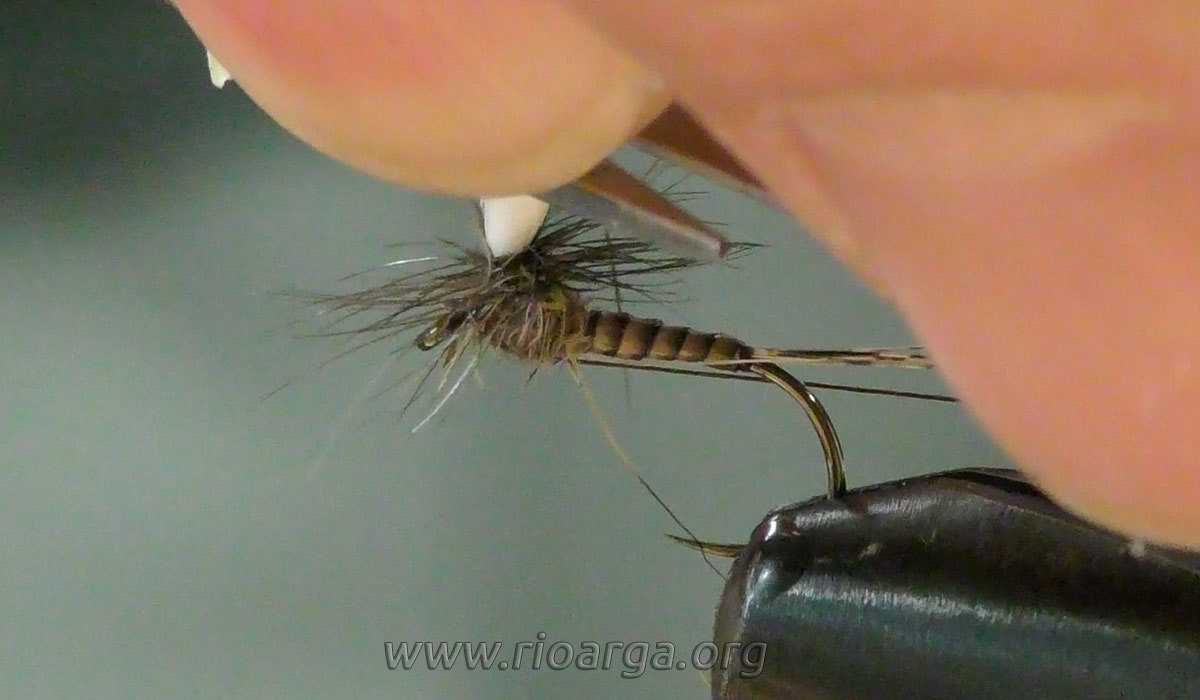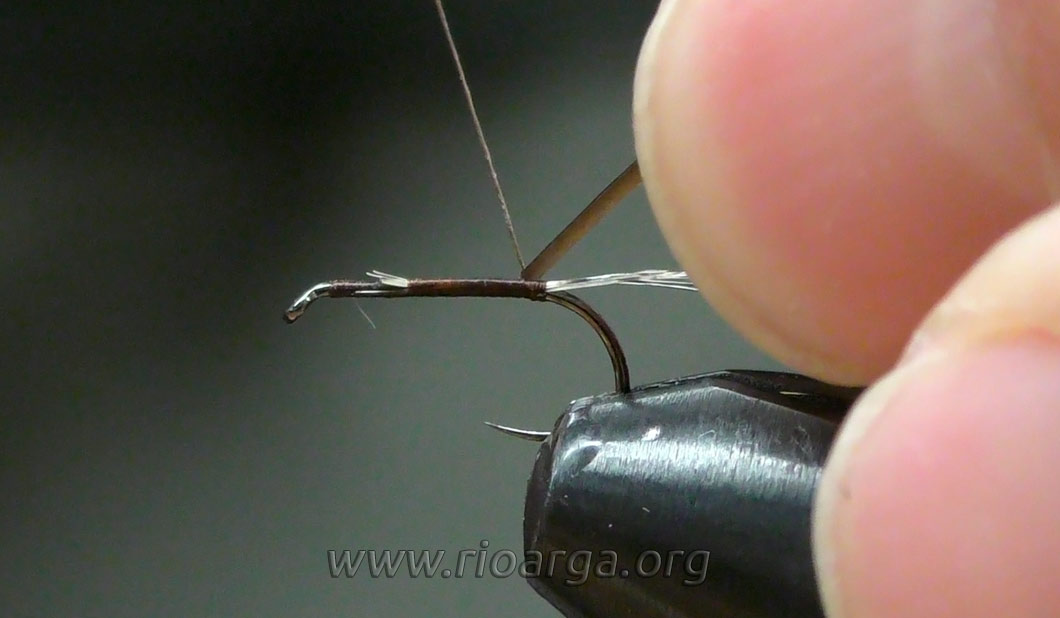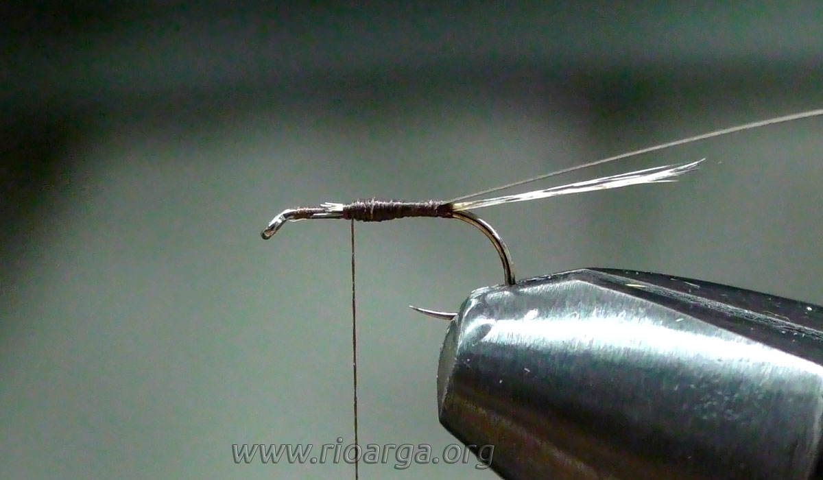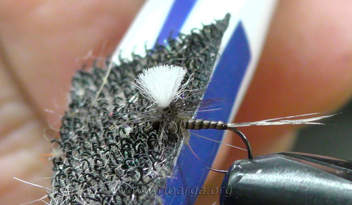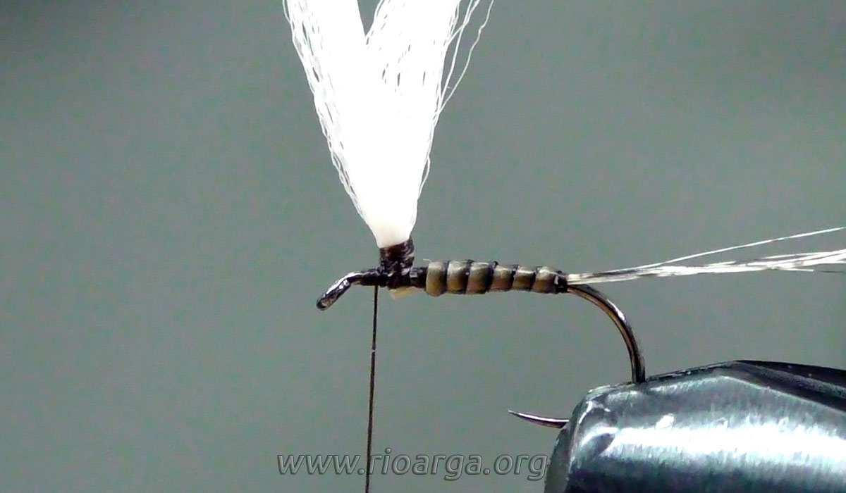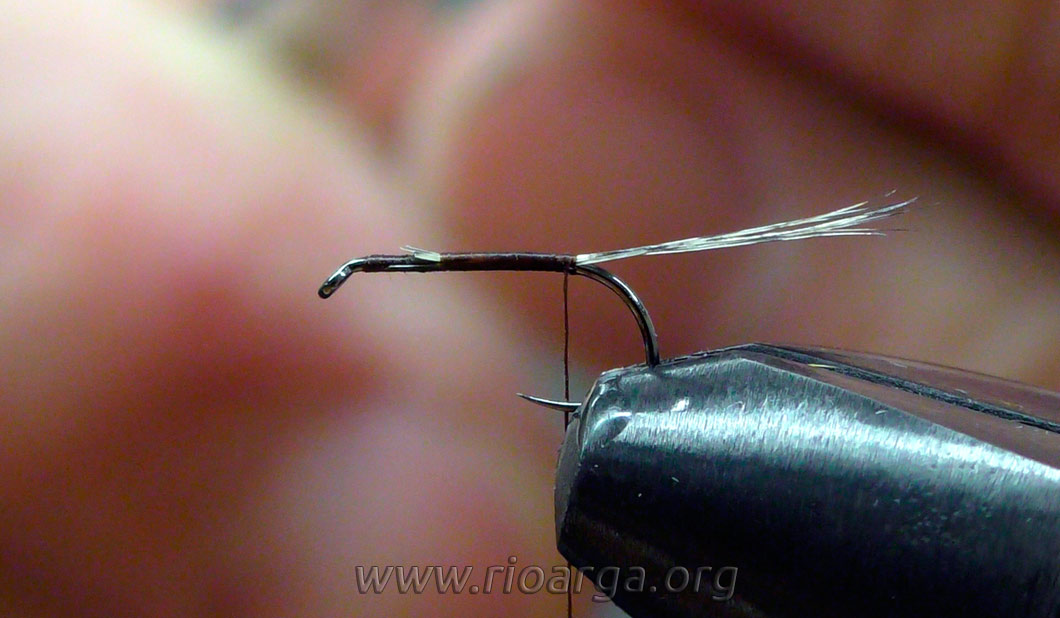 Este es un montaje que por su realismo nos dará muy buenos resultados pescando en tandem acompañado de una ninfa de pelo en 2,5 o bien sólo pescando en zonas de corrientes.