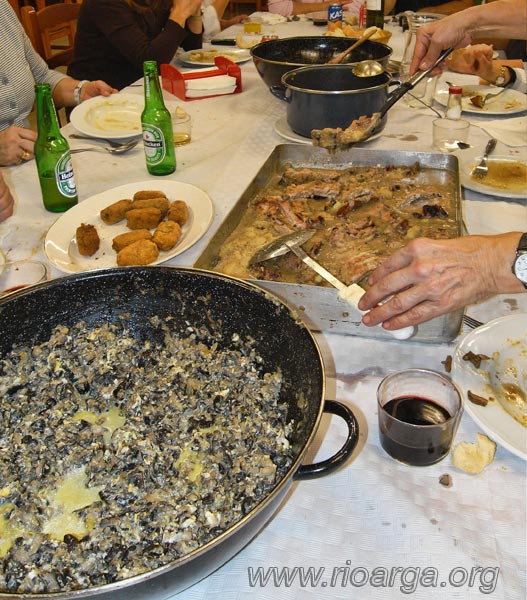 Obtuvimos unos cuantos kgs. de negrillas y rovellón y la cena se pudo arreglar. Nuestro gran CHEF, Juan Urra, nos hizo una cena de categoría con varios platos de su cosecha a base de setas en distintas formas, croquetas de setas varias, excelentes y por si fuera poco, una gran fuente de costillas con patatas con salsa de setas que para sí quisieran los reyes de antaño.
